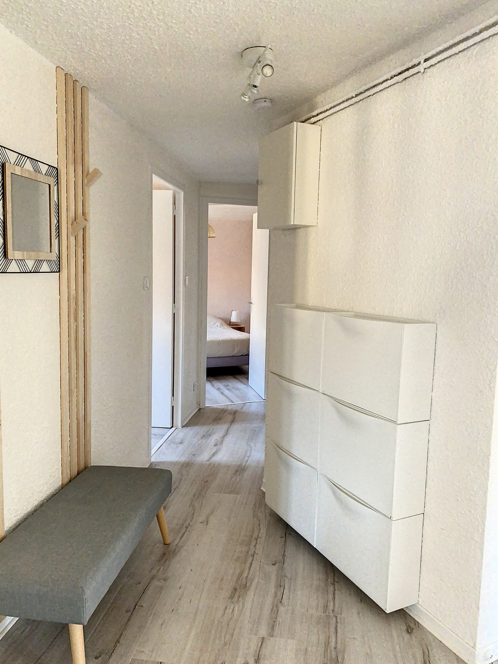 Cet appartement se situe au 4ème et dernier étage de l'immeuble, sans ascenseur. Il est composé d'une cuisine entièrement équipée séparée d'un salon/ salle à manger coquet. La salle d'eau dispose d'une douche moderne et la partie nuit est composée de deux chambres avec placards. Idéal pour étudiants-