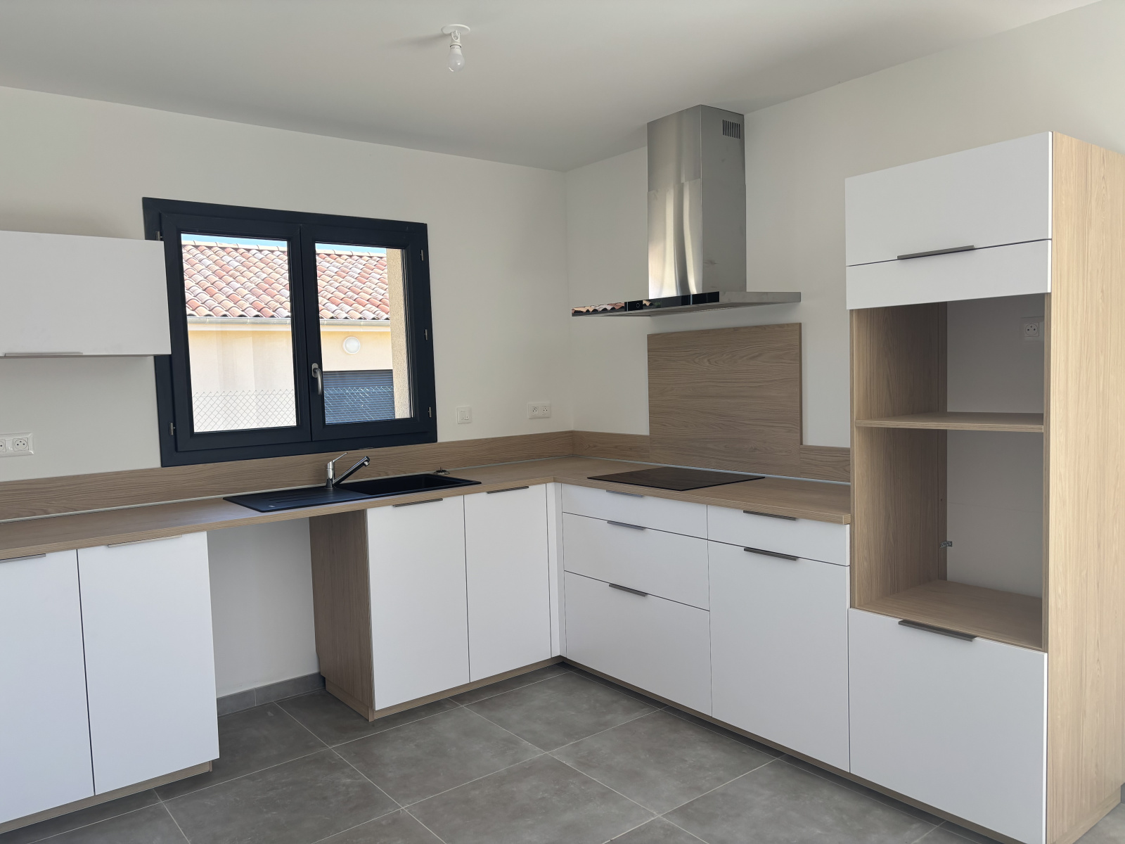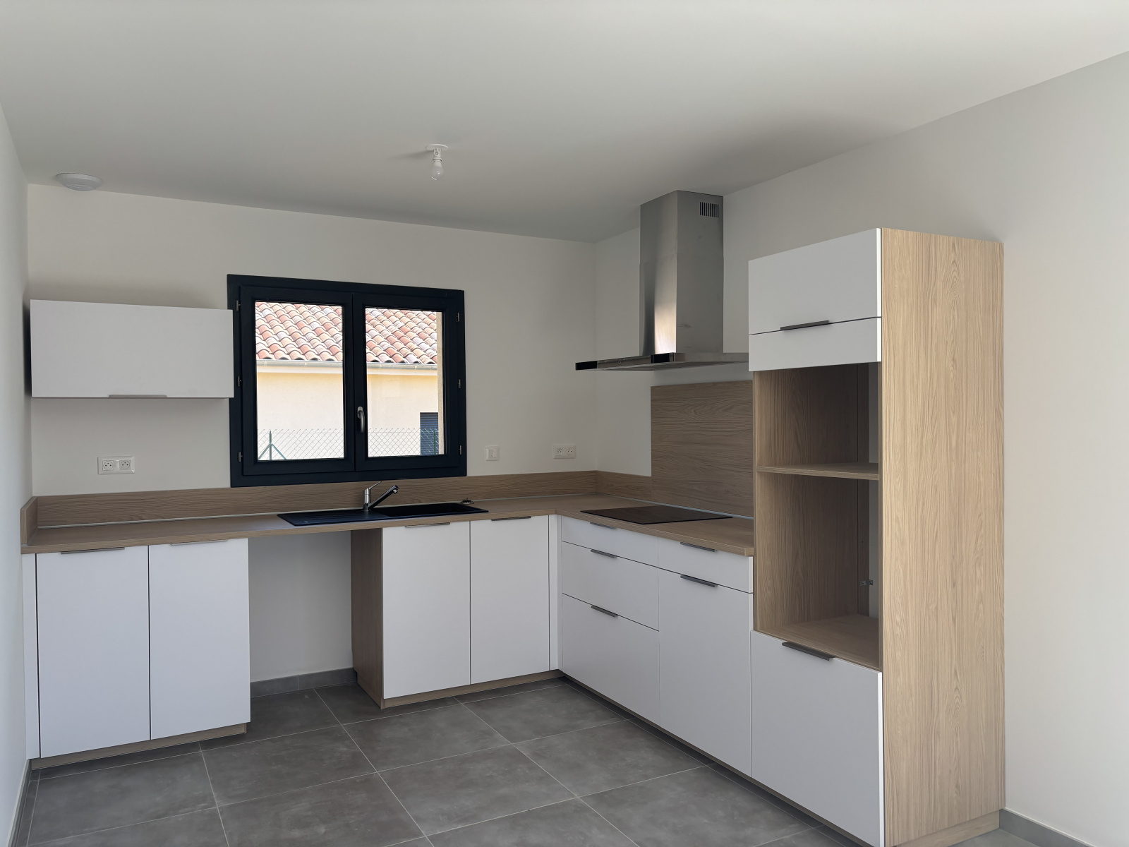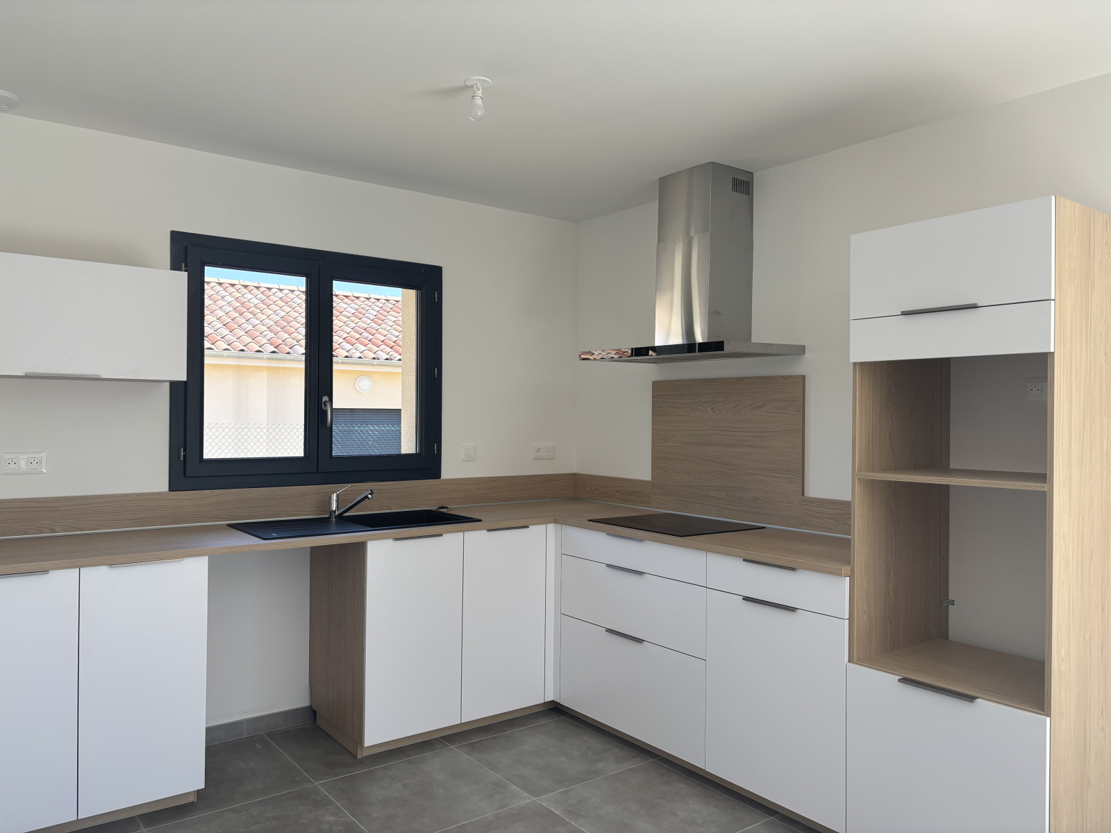 Villa d'une surface de 96.03m², sont composées d'une belle pièce de vie lumineuse avec cuisine ouverte et équipée, d'une salle d'eau avec douche italienne, d'un wc séparé avec lave-mains et de trois chambres avec placard aménagé.