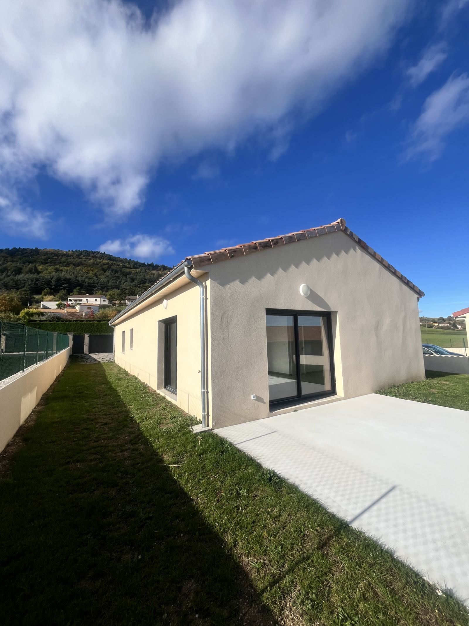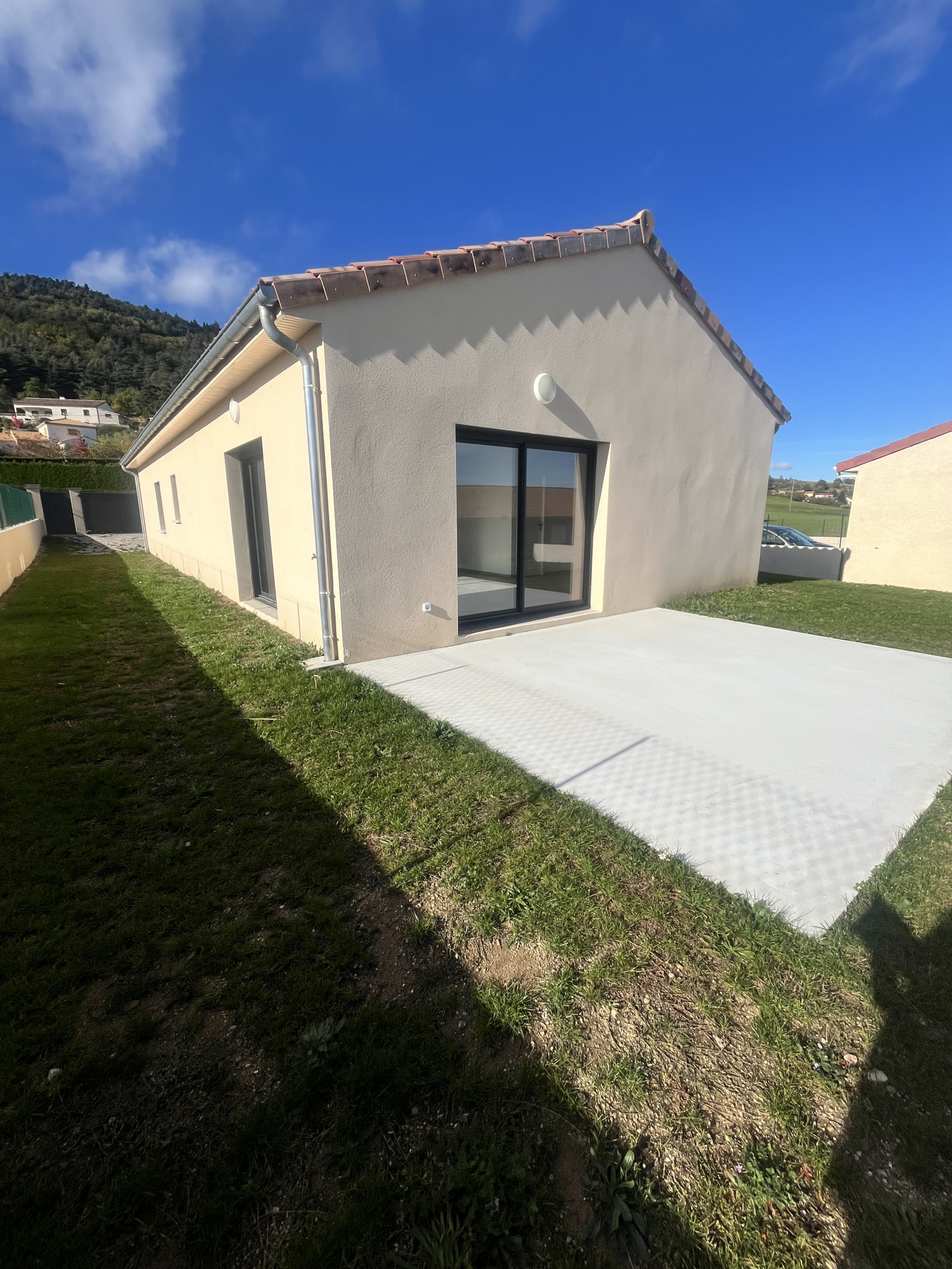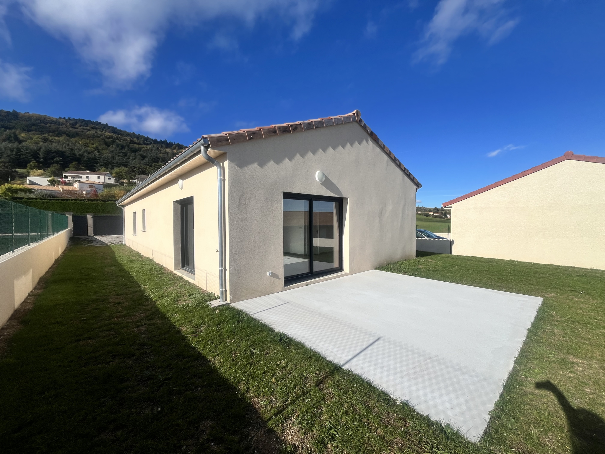 Située au coeur d'un petit lotissement récent et calme de St Alban d'Ay, a 10 minutes d'Annonay, nous vous proposons une villa neuve à la location.