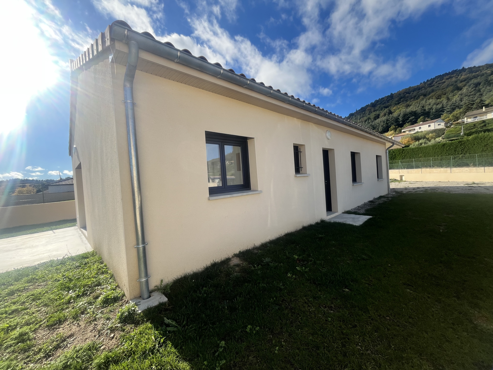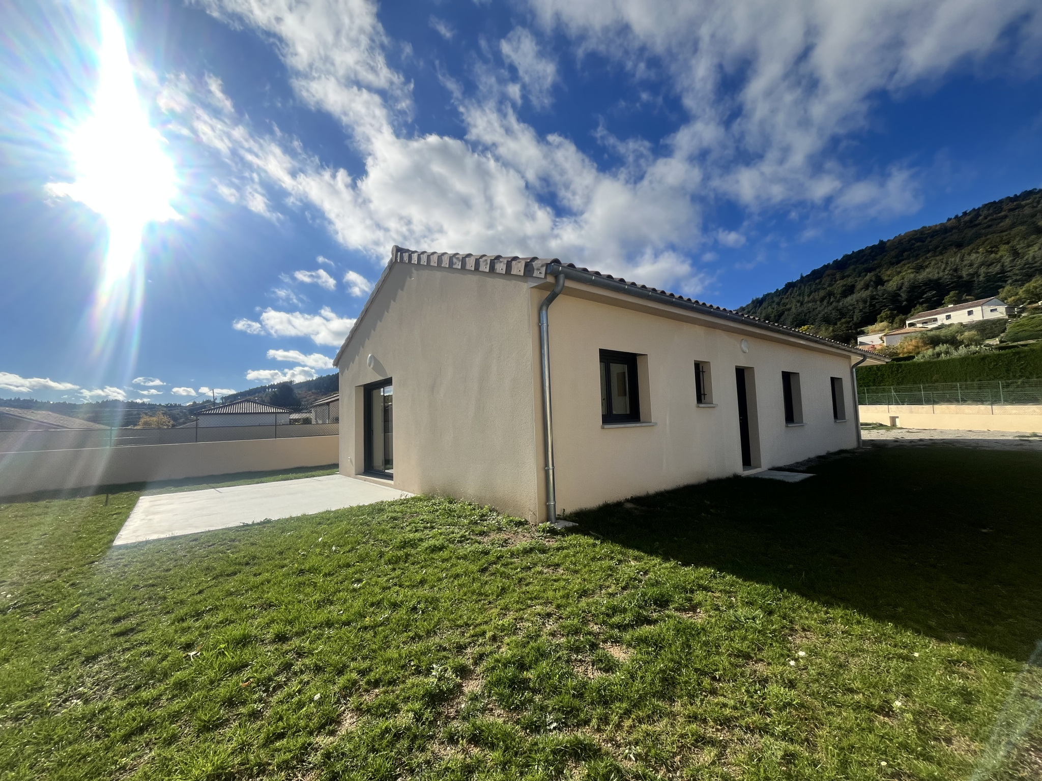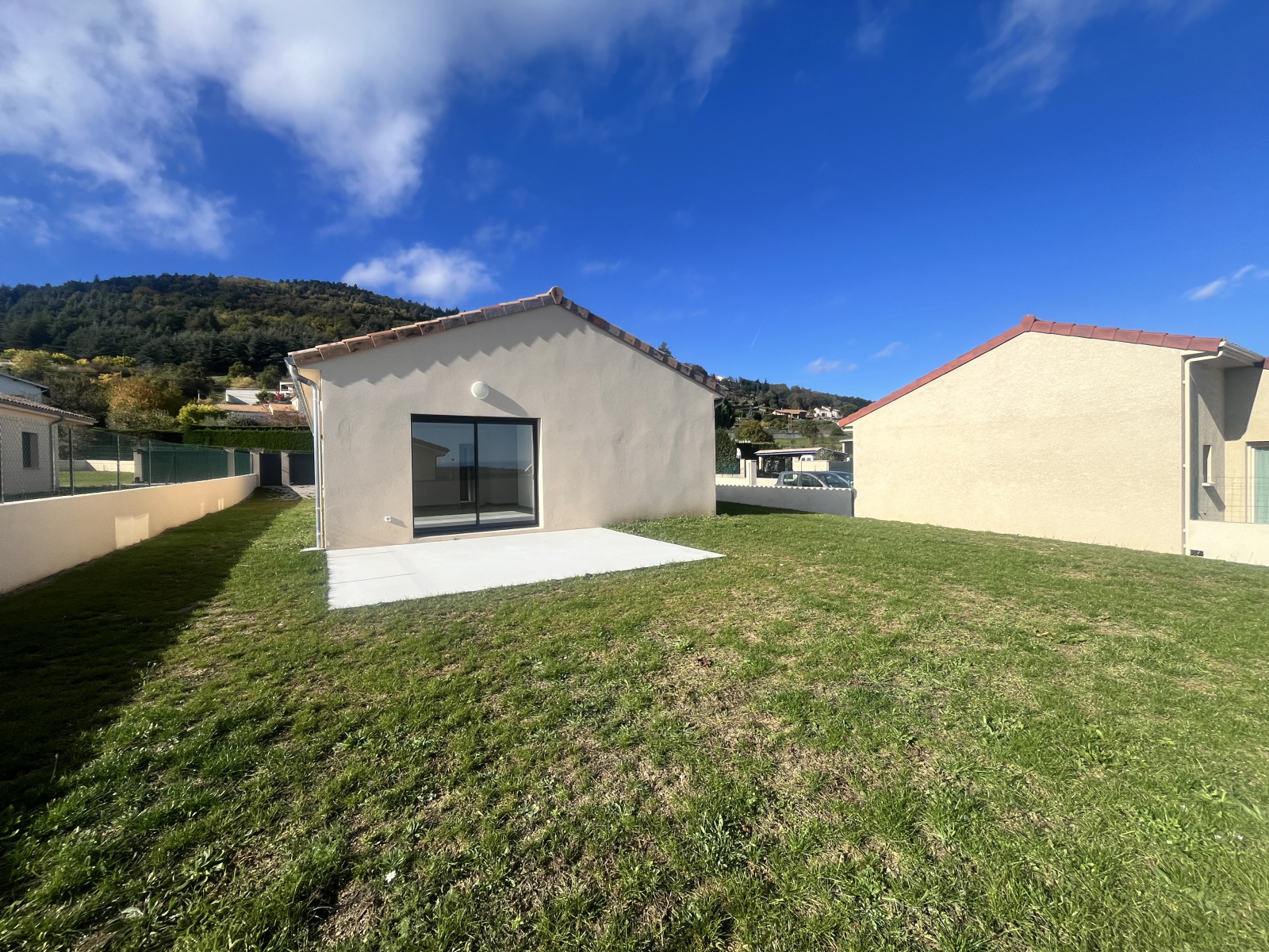 Située au coeur d'un petit lotissement récent et calme de St Alban d'Ay, a 10 minutes d'Annonay, nous vous proposons une villa neuve à la location.