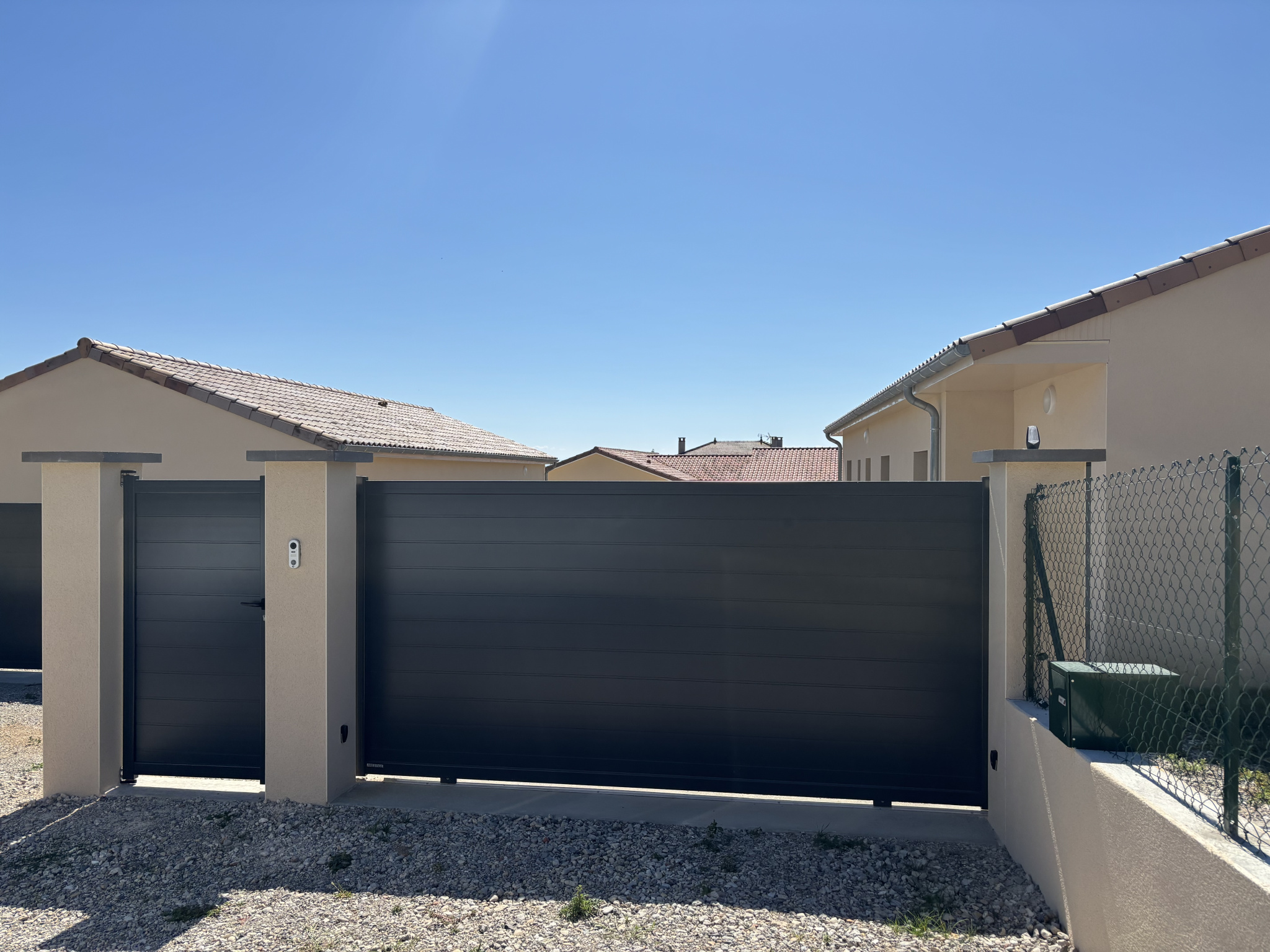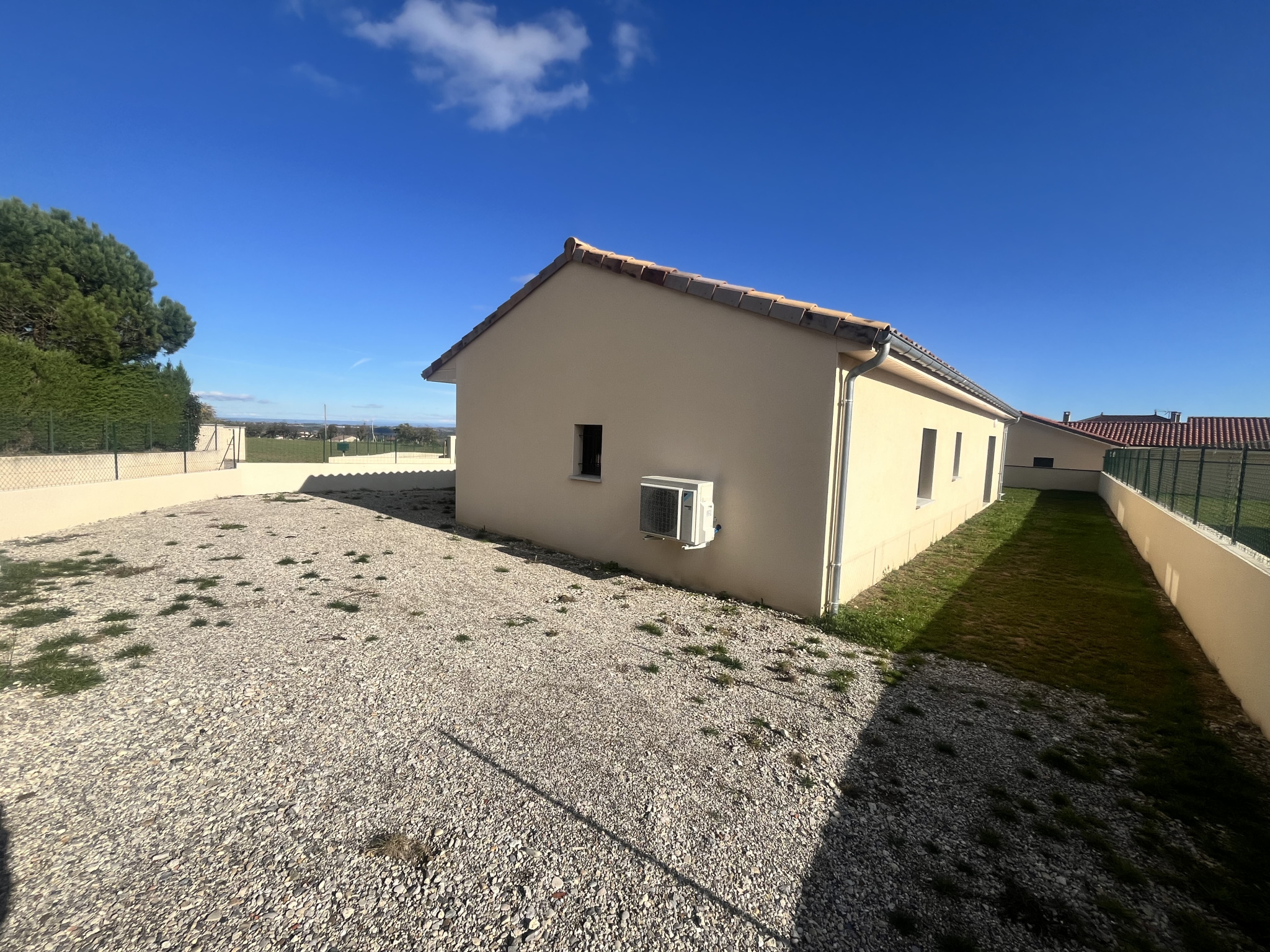 Cette villa de plain-pied est construite sur un terrain d'environ 700 m², entièrement cloturé et sécurisé via un portillon et un portail électrique.