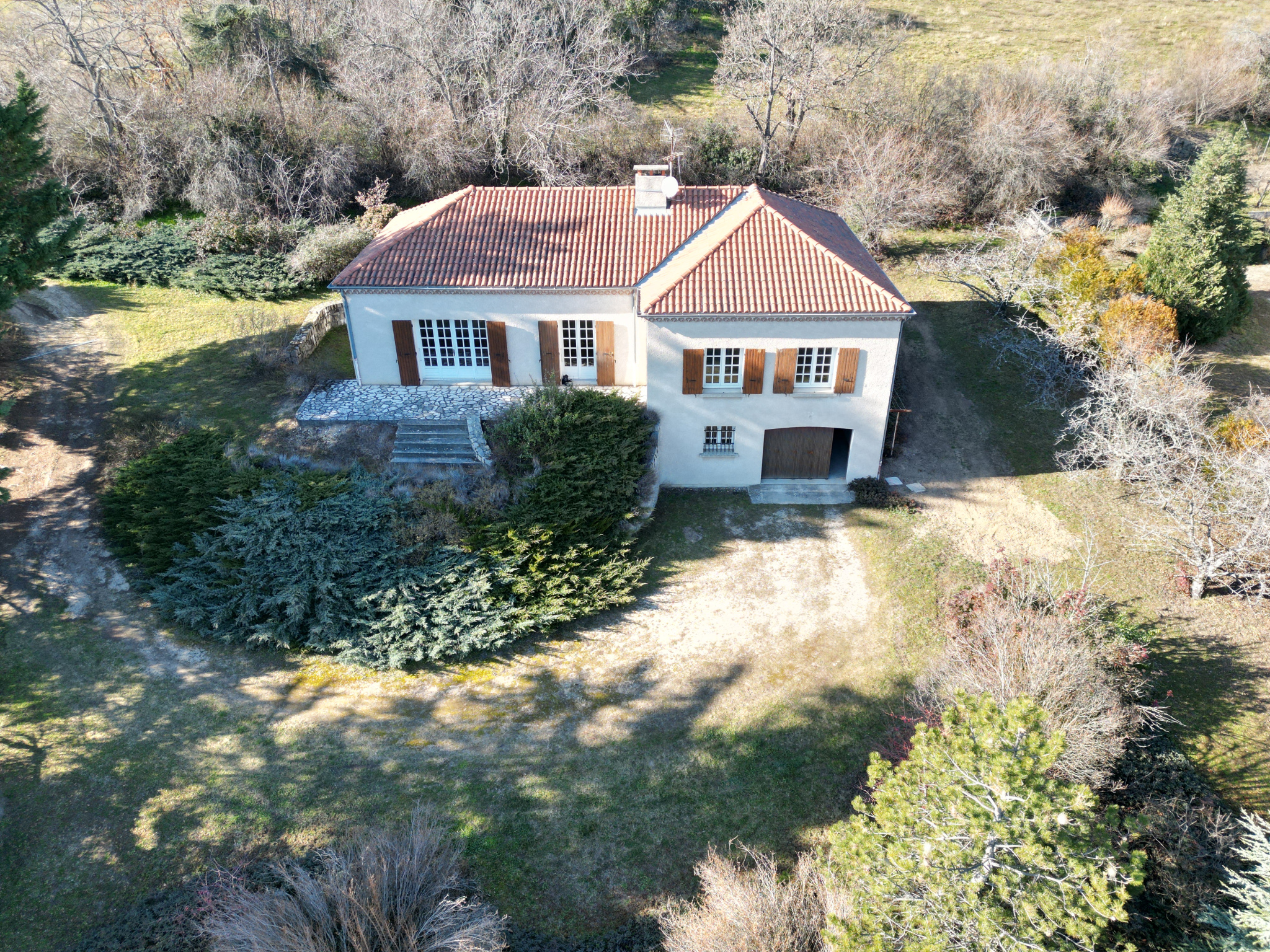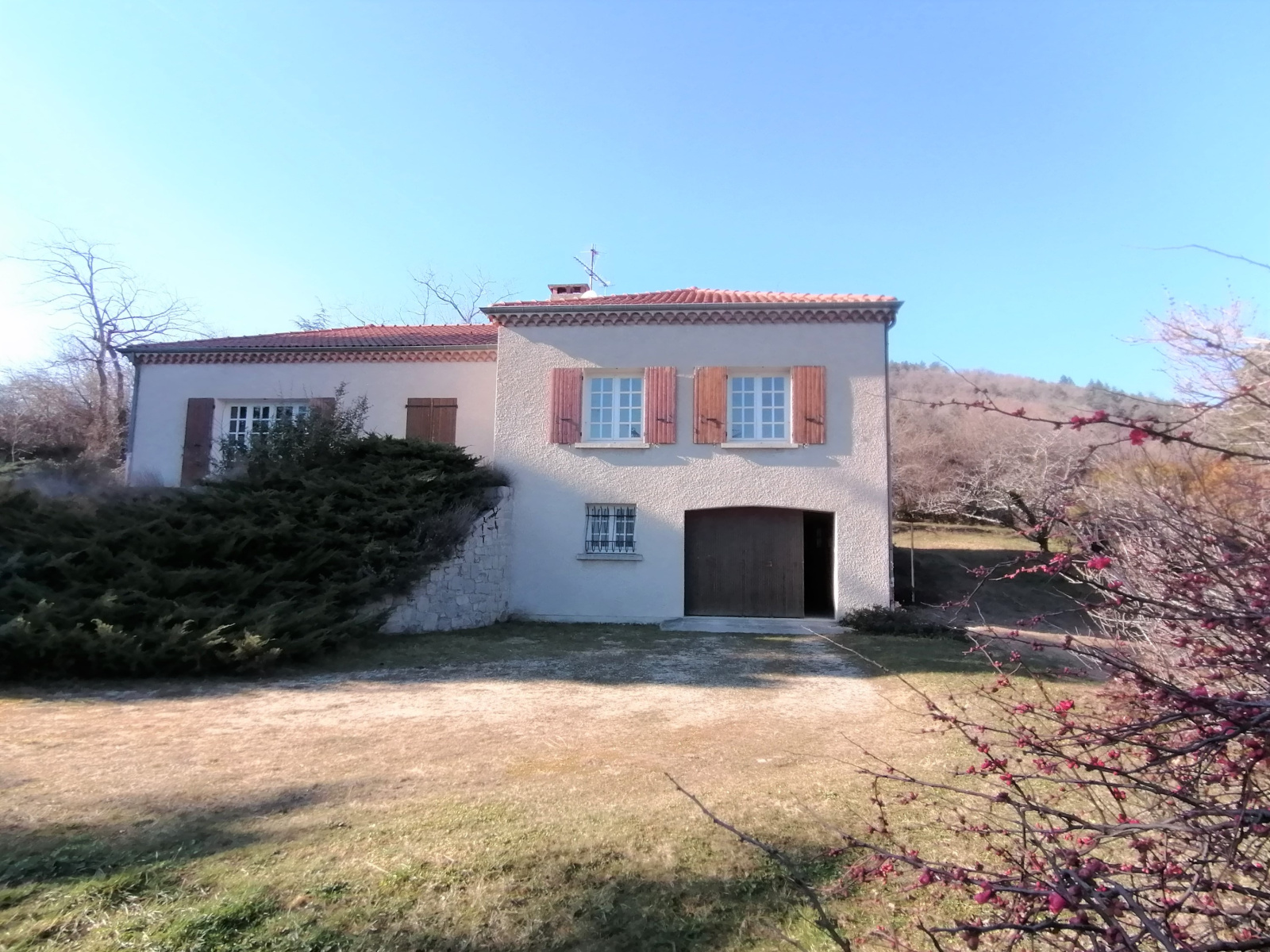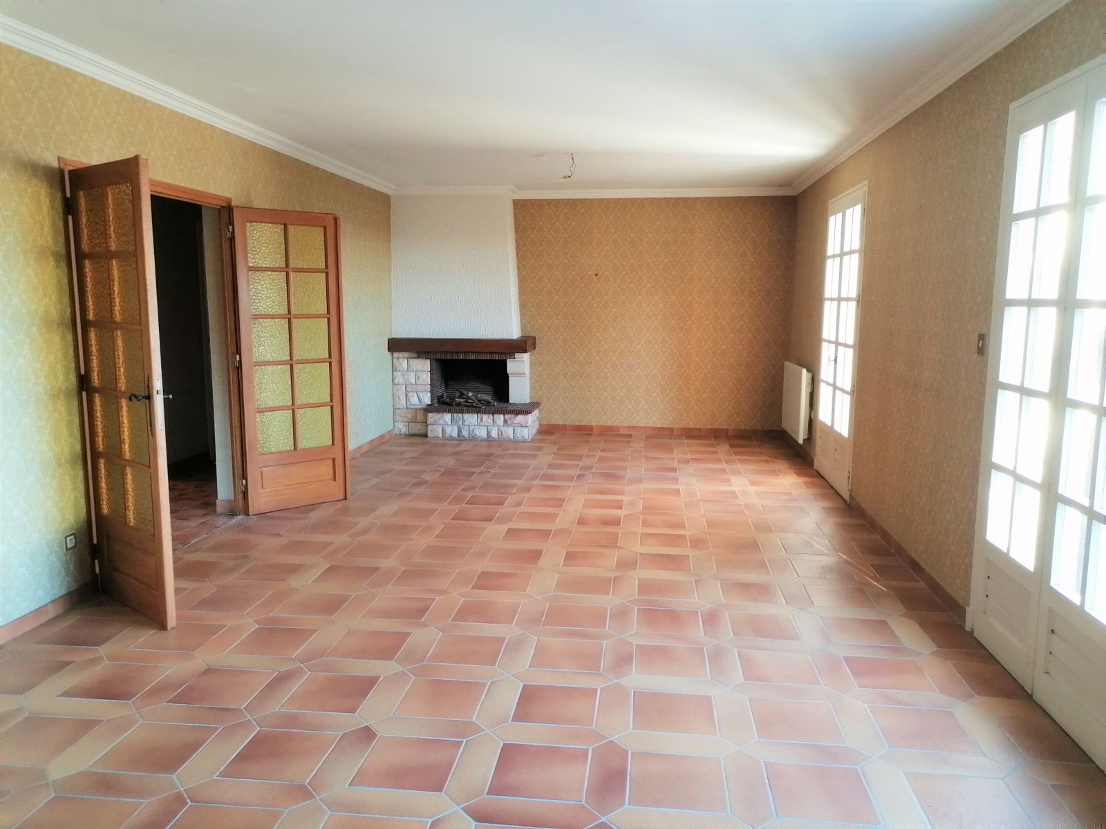 Les menuiseries de la maison sont en double-vitrage bois, chauffage électrique et cheminée à foyer ouvert au salon. Charpente et toiture en bon état. Il faudra prévoir des travaux de rafraîchissement.