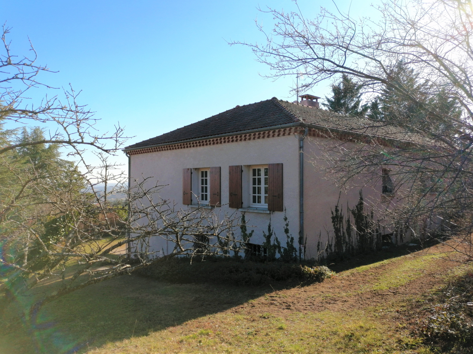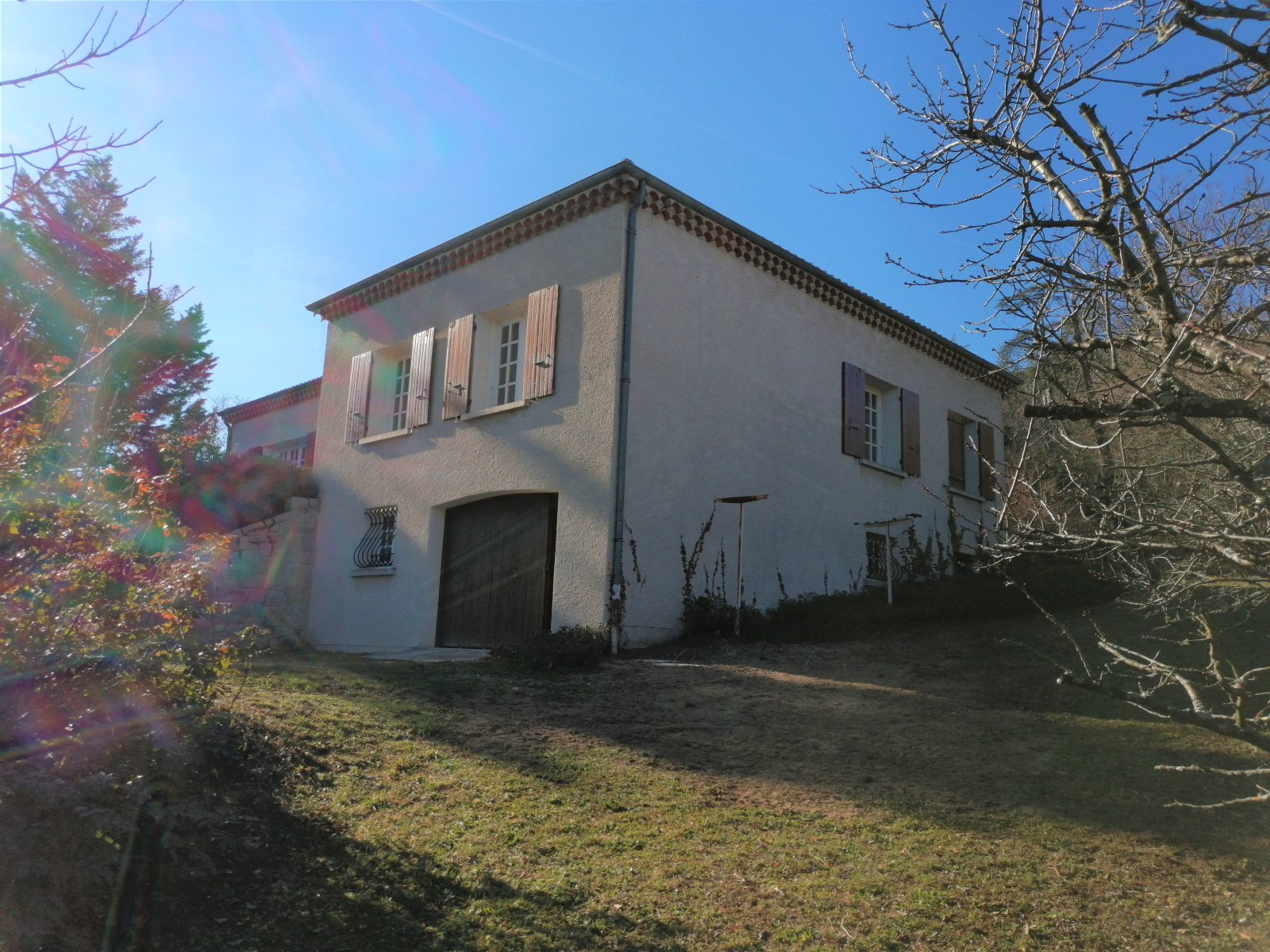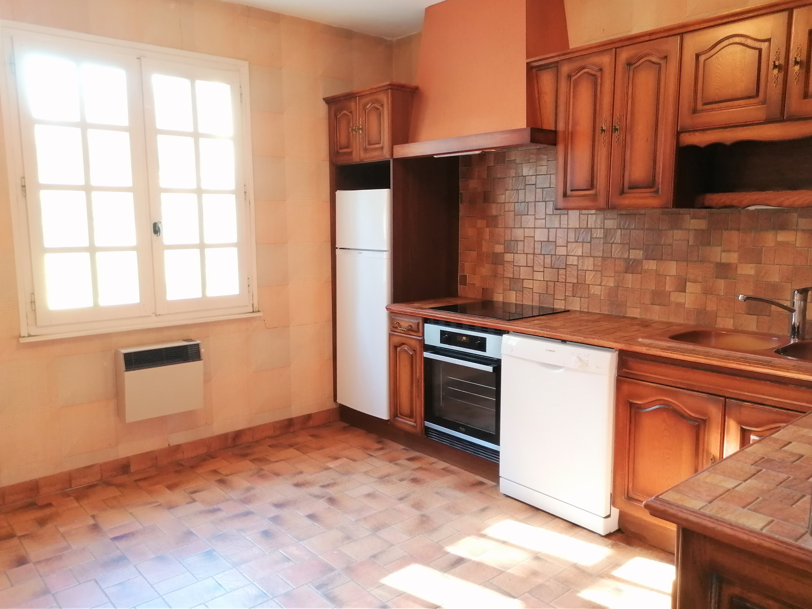 Les menuiseries de la maison sont en double-vitrage bois, chauffage électrique et cheminée à foyer ouvert au salon. Charpente et toiture en bon état. Il faudra prévoir des travaux de rafraîchissement.