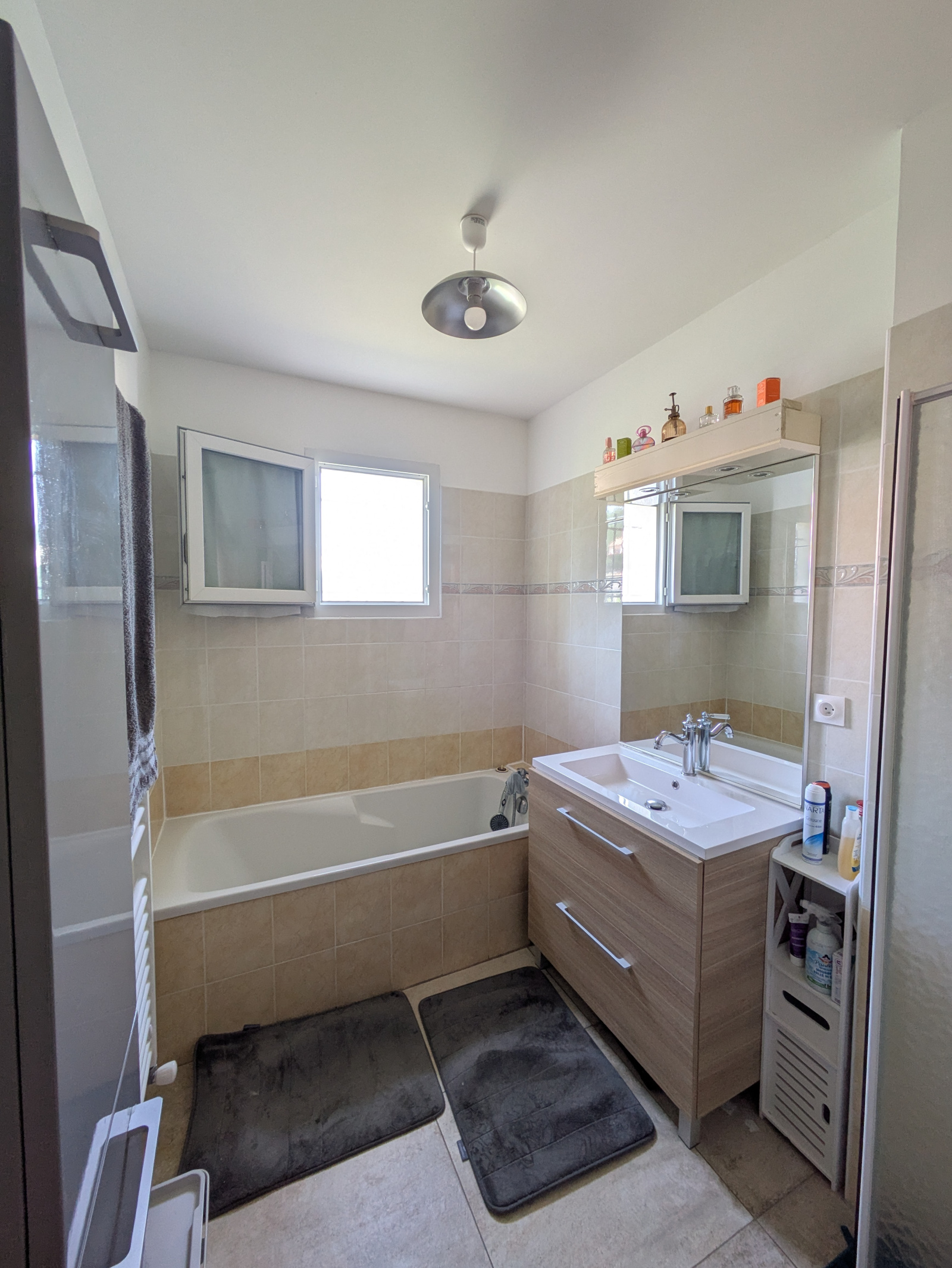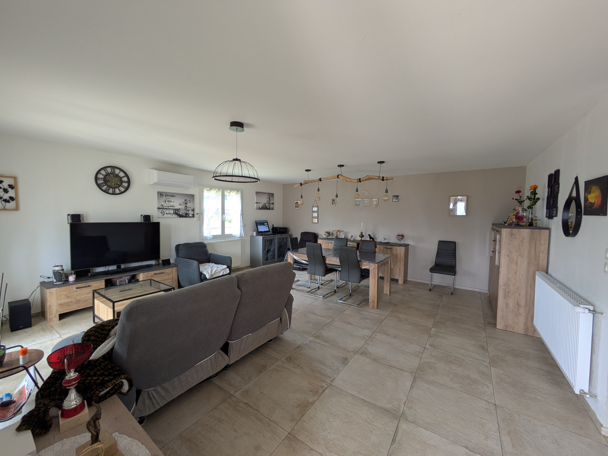 La maison est chauffée avec des radiateurs par une chaudière au gaz de ville + clim réversible (idéale l’été) de 2024 dans le salon pouvant largement prendre le relais sur le chauffage l’hiver. Fenêtres en pvc avec volets solaires et moustiquaires. Toiture en bon état. Isolation des combles rajoutée courant 2022 + isolation au plafond au garage. Electricité aux normes. Store banne électrique côté terrasse.