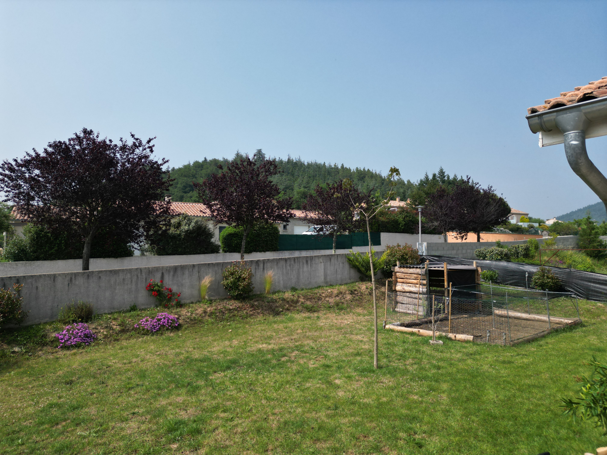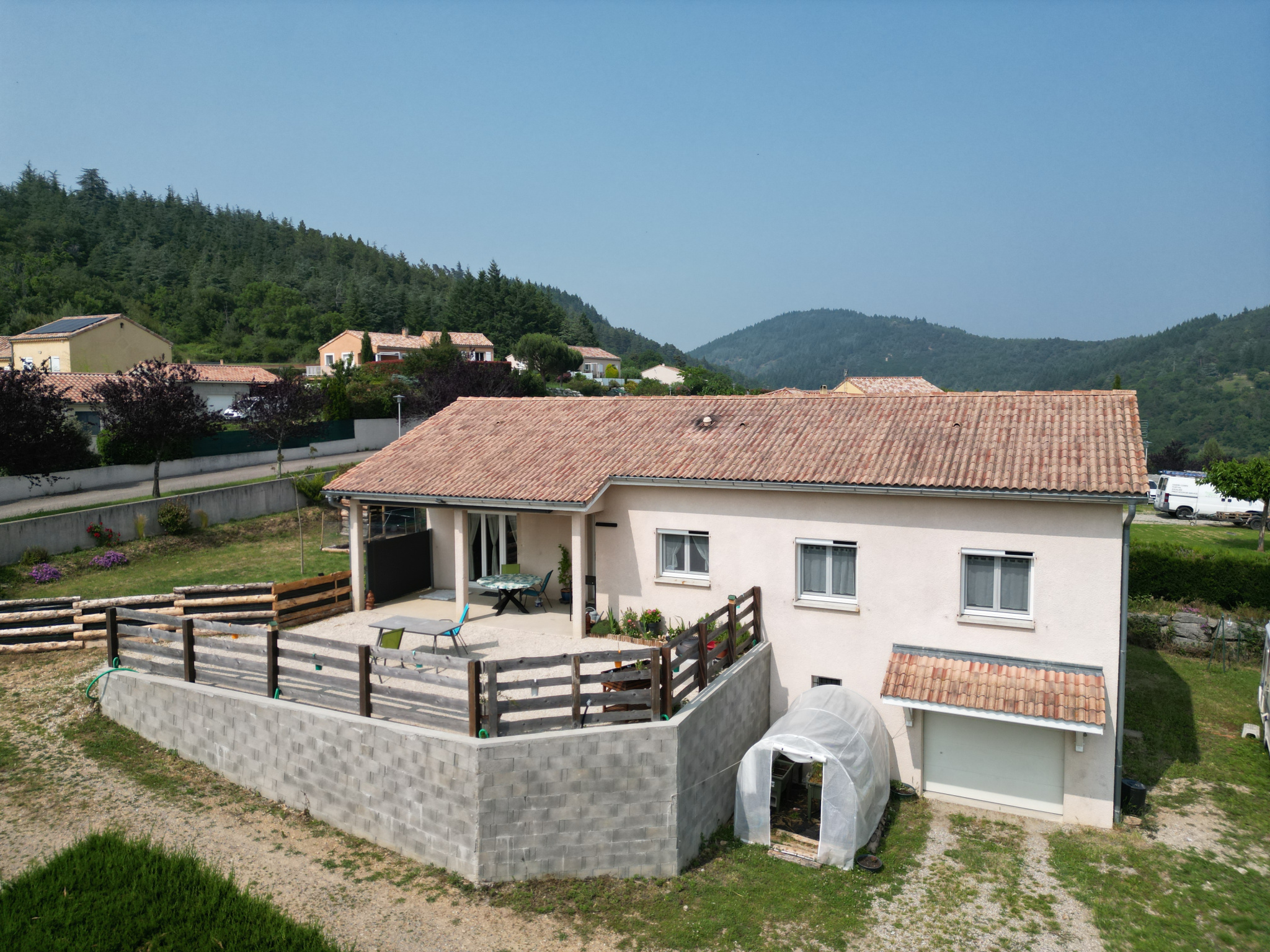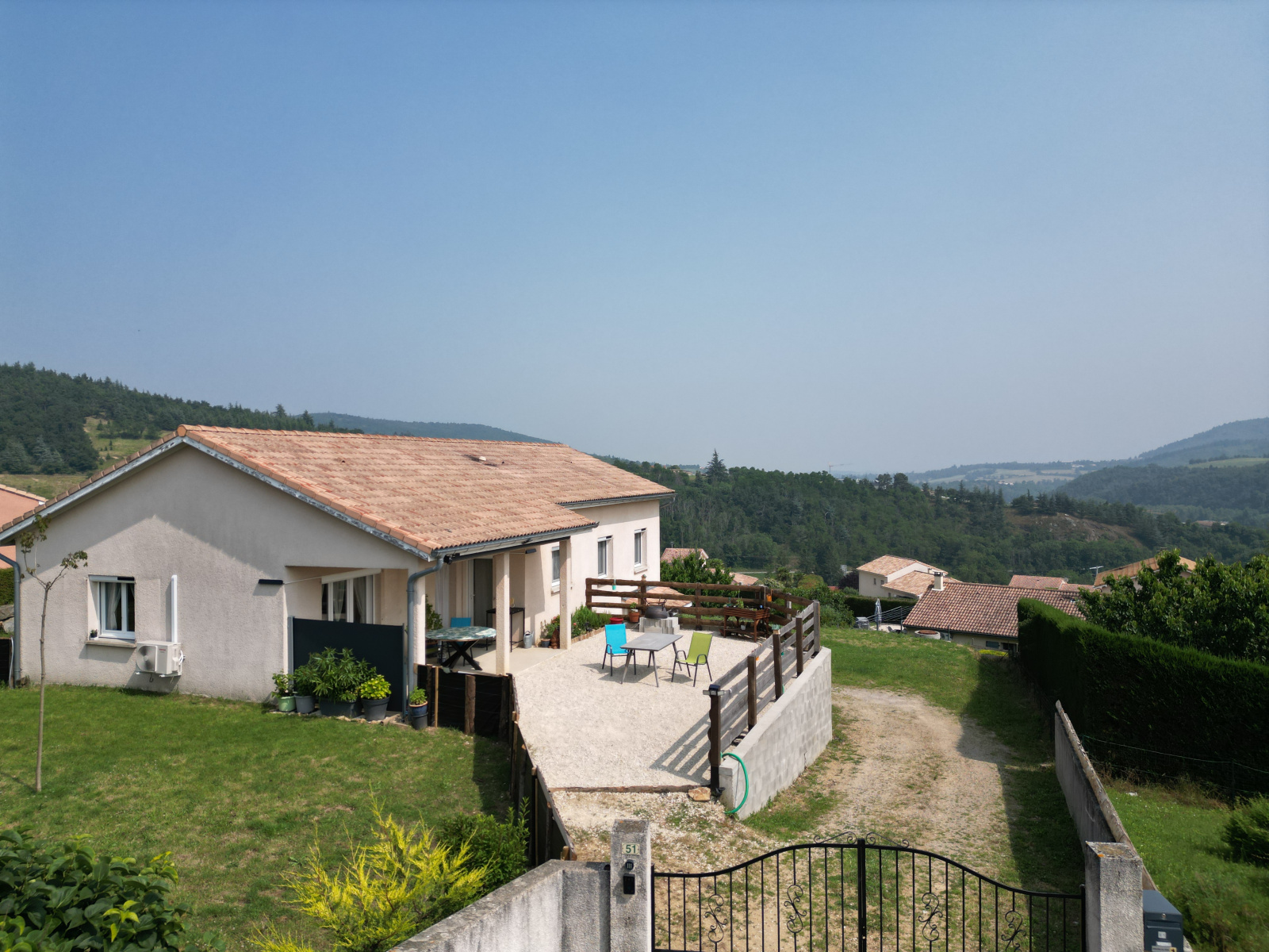 La parcelle d'environ 1000m² est entièrement close, avec un portail électrique à l'entrée. Vous profiterez d’une jolie terrasse semi-couverte avec une très belle vue dégagée. La maison est très bien entretenue et il n'y a pas de travaux à prévoir.