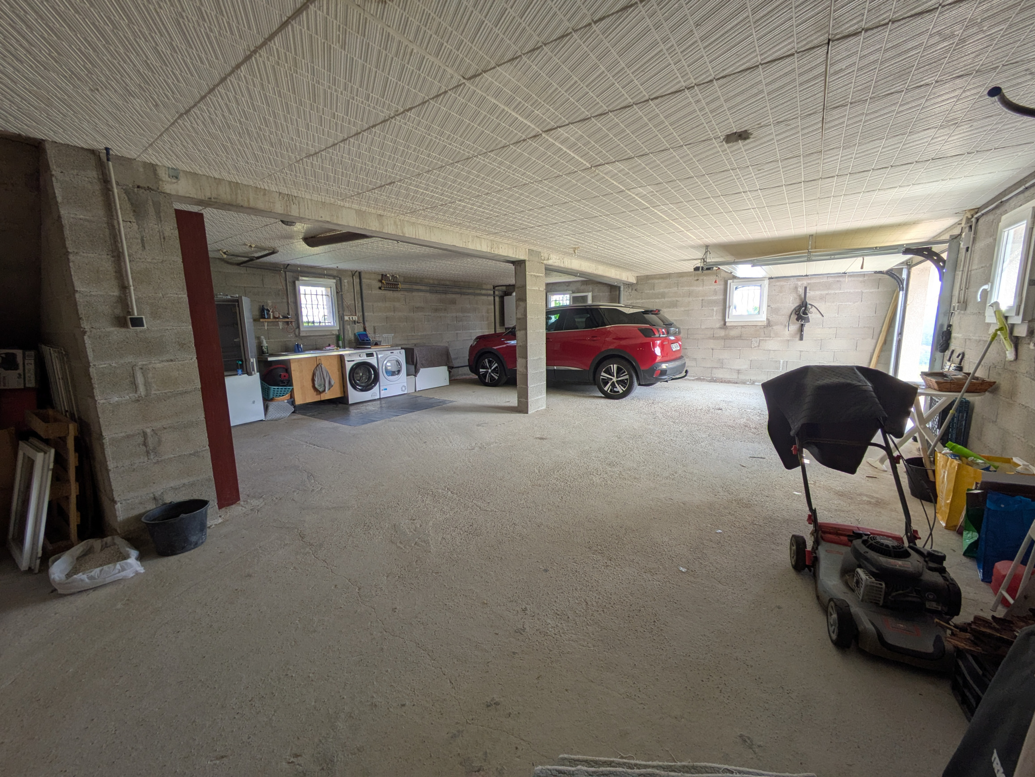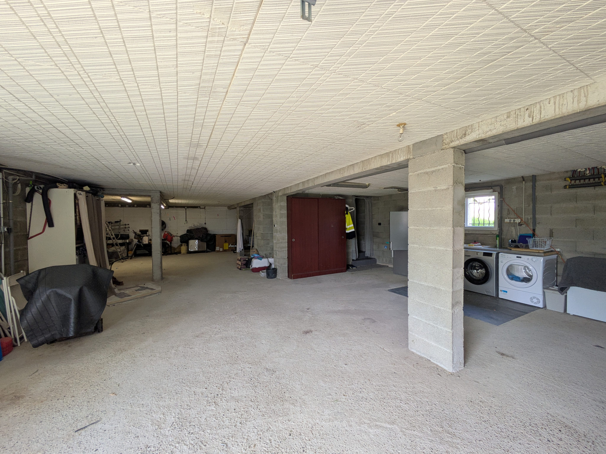 Au sous-sol, accessible depuis l’intérieur ou l’extérieur de la maison, vous apprécierez le sous-sol complet permettant de garer plusieurs véhicules. Un espace buanderie (avec lavabo et coin machine à laver) ainsi qu’un espace cave selon les envies. La porte du garage est électrique.