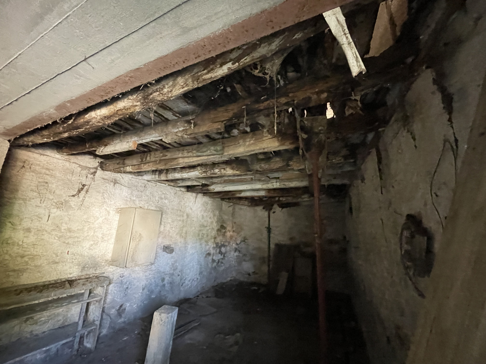 La maison est en mauvais état et nécessite de gros travaux de restauration, dont la toiture.
