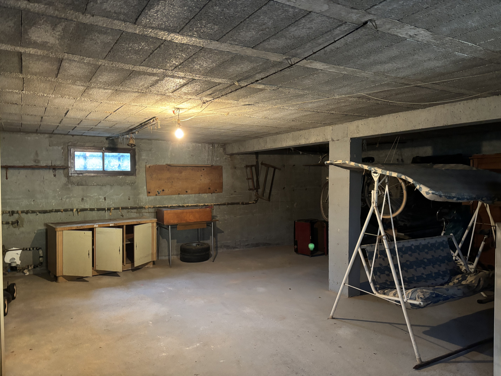 Au niveau inférieur, un sous-sol complet avec accès voiture par une porte manuelle.
