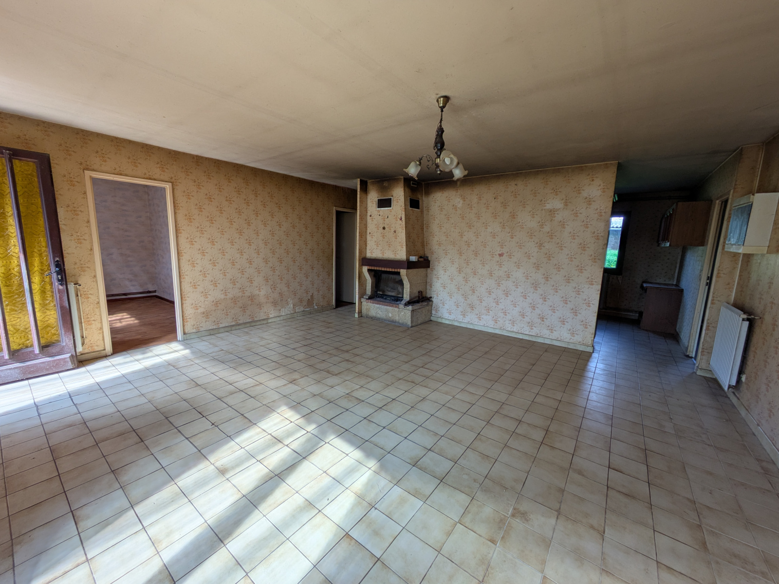 Composée d’une pièce de vie avec cheminée et cuisine semi-fermée (pouvant s’ouvrir sur le salon), de 4 chambres, d’un WC indépendant et d’une salle de bain. La configuration intérieure actuelle peut être intégralement repensée car il n’y a pas de murs porteurs. La dépendance située entré la partie habitation et les garages n’est accessible que depuis l’extérieur. Une cave se trouve juste en dessous.