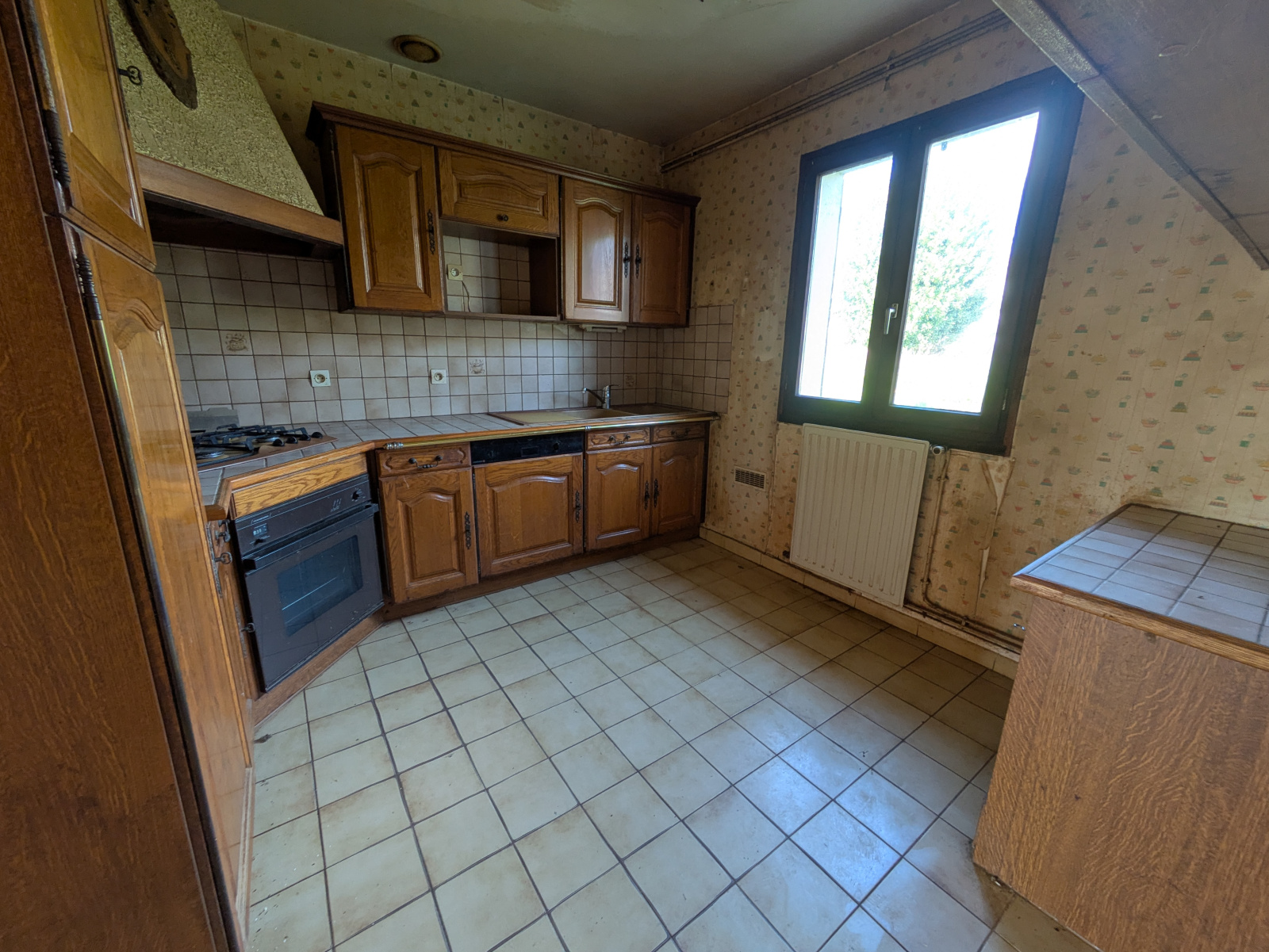 Côté technique : chauffage au gaz de ville + cheminée bois dans le salon. Menuiseries en bois double-vitrage d’origine. Prévoir des travaux pour la remise aux normes électrique, isolation et rafraichissement global. La toiture est plutôt en bon état. Assainissement au tout-à-l’égout. Puit présent sur le terrain pour l’arrosage du jardin.