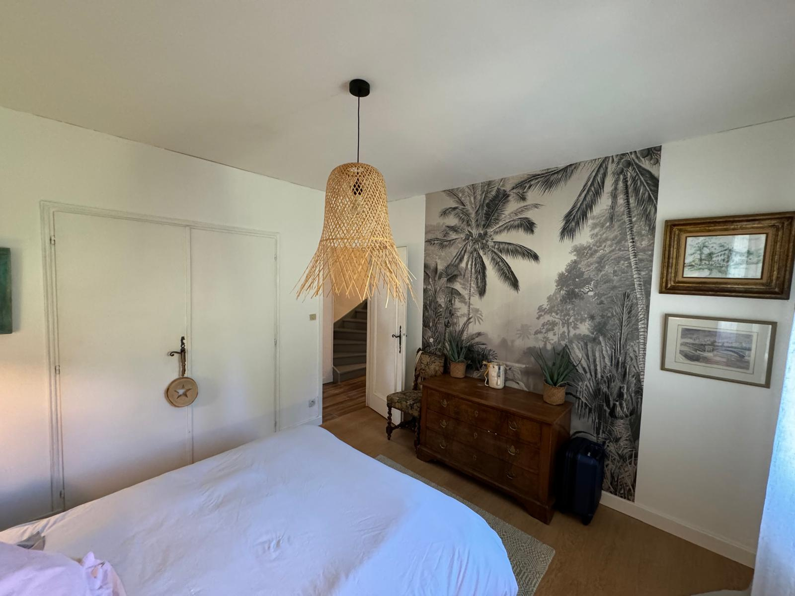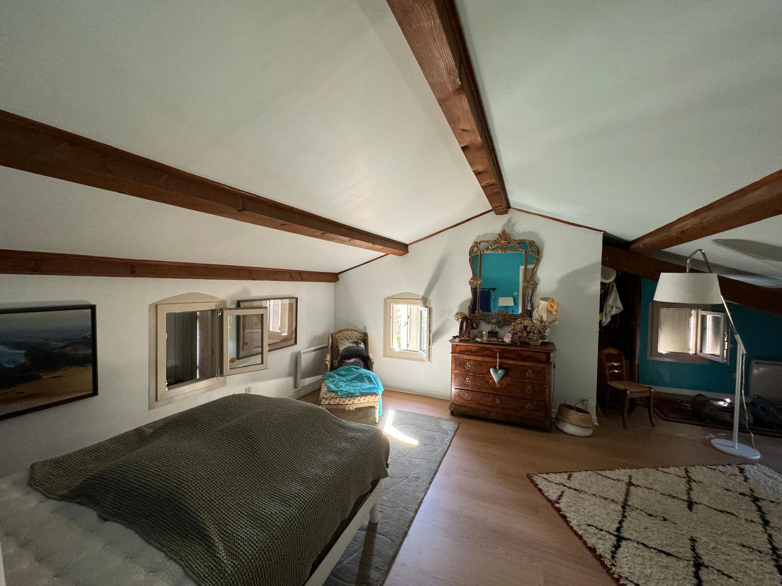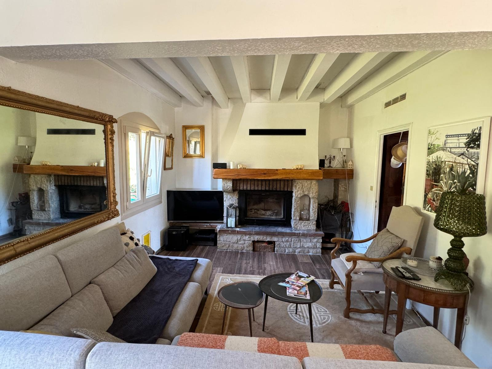 La villa, de 1979, est construite sur un sous-sol complet avec un grand garage pour plusieurs voitures, en rez de chaussée haut avec accès par une vaste terrasse, nous avons un beau hall d'entrée, un ensemble séjour et salon en T de 52 m² bénéficiant d'une cheminée avec insert, une cuisine équipée récente de 13,70 m², deux chambres de 12 et 16 m², une salle de bains rénovée avec douche italienne, wc séparé. A l'étage, une pièce ouverte bureau et une chambre mansardée très spacieuse de 40 m² au sol, une salle d'eau rénovée avec douche et wc.