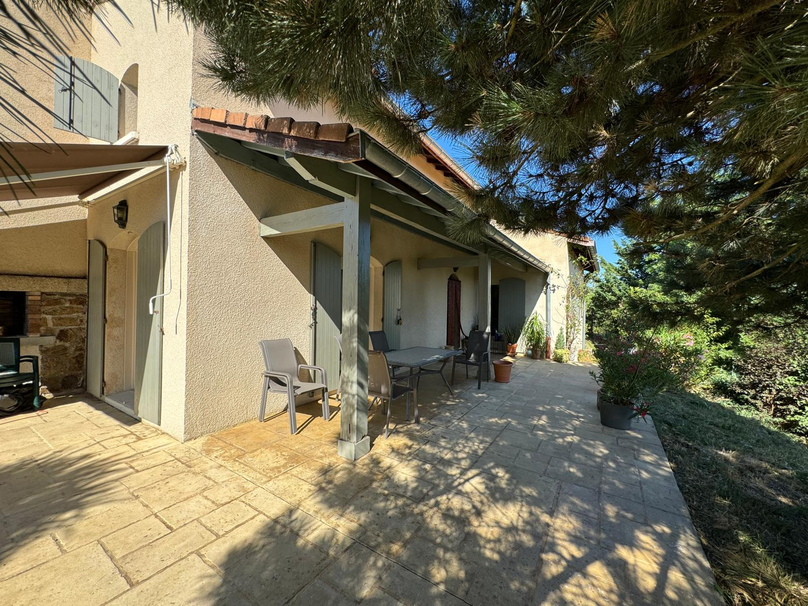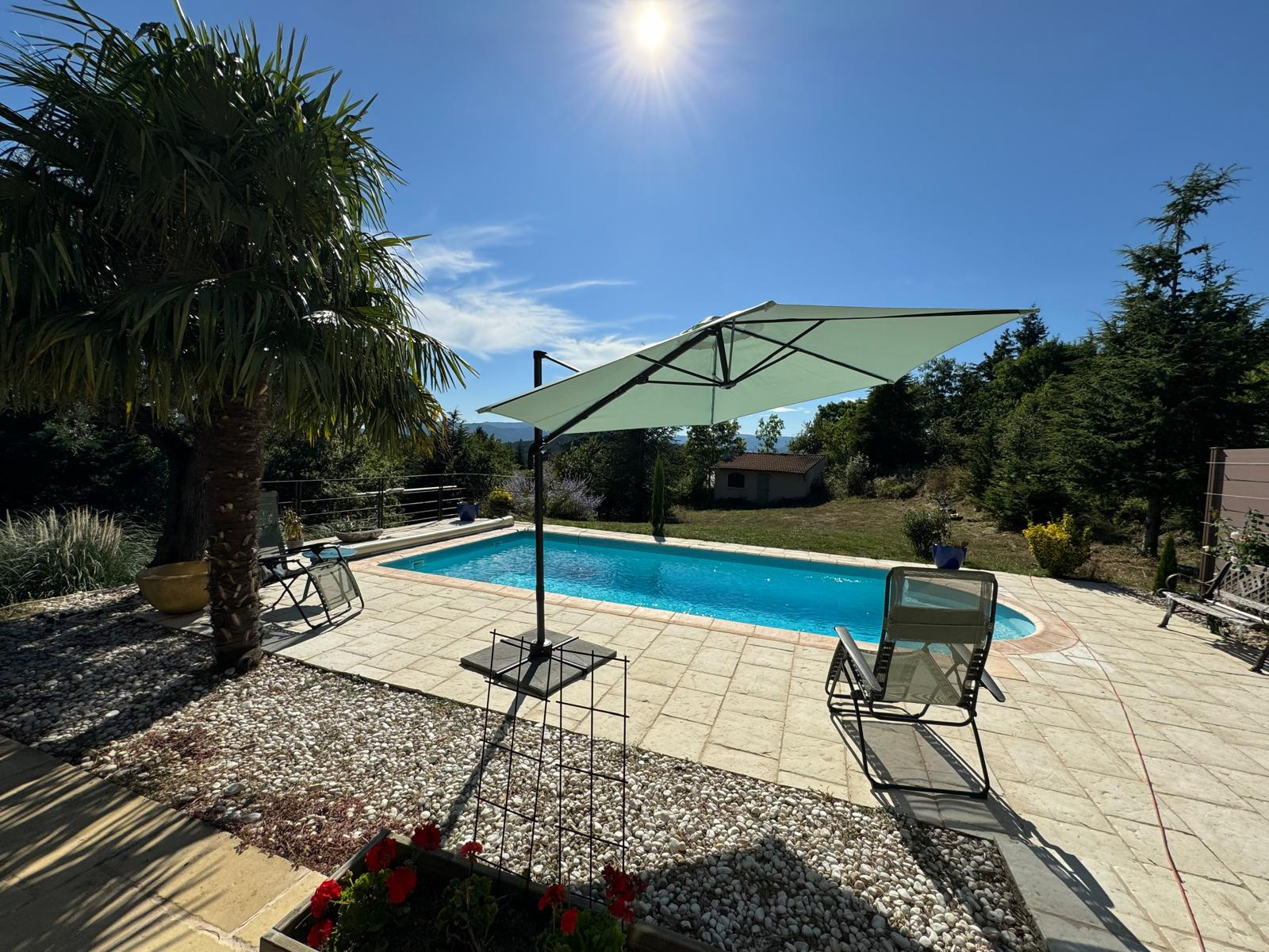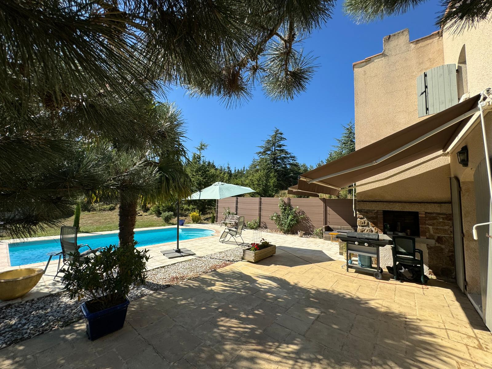 La propriété bénéficie également d'un extérieur exceptionnel, offrant de belles terrasses et un coin piscine aménagé. la piscine est une coque enterrée 8*4, traitement au chlore.